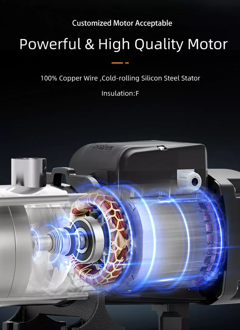 Ümumi təzyiq nəticəsinə töhfə verən hər bir mərhələ ilə, ehtiyacınız olduqda davamlı və güclü bir su axını edə bilərsiniz. Bağçanızı eyni vaxtda çox duş işlətmək üçün bu nasos etibarlı və ardıcıl bir performans təqdim edir.